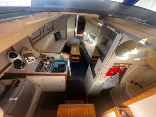 Die Dehler 31 ist ein sportliches Segelboot mit hervorragenden Segeleigenschaften. Mit einer Länge von 9,50 Metern bietet sie genügend Platz für komfortables Segeln mit Familie oder Freunden. Das moderne Design und die Verarbeitung machen die Dehler 31 zu einer beliebten Wahl für Segler, die sowohl Leistung als auch Komfort schätzen. Mit einer ausgewogenen Kombination aus Geschwindigkeit und Manövrierfähigkeit ist dieses Boot sowohl für kurze Tagestouren als auch für längere Segelabenteuer geeignet.