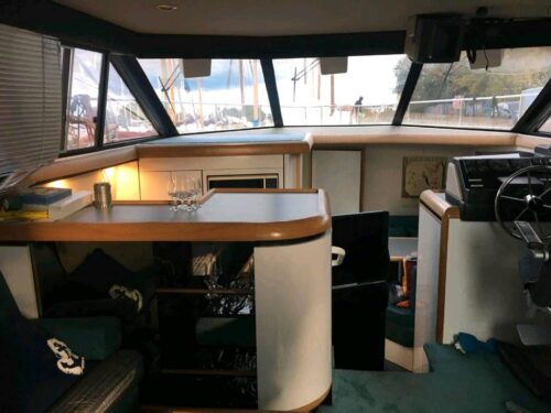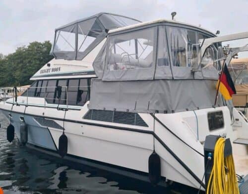 Durch Bug- und Heckstrahlruder ist das Boot gut Händelbar . Im allgemeinen hat der Halbgleiter auch bei etwas rauheren Wetterverhältnisse sehr gute Fahreigenschaften .