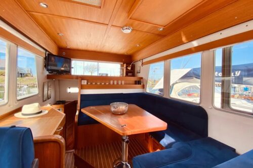 Geräumiges Pilothouse: Viel Platz und Komfort für längere Fahrten oder entspannte Stunden an Bord.