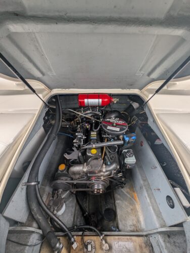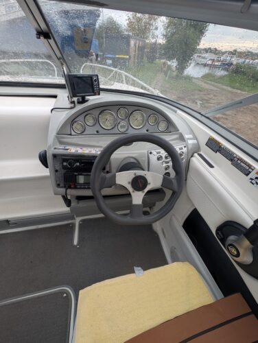 Zur Ausstattung gehören unter anderem Badeplattform mit Edelstahlleiter, Persenning, Radio, Navigationsbeleuchtung und diverse Staumöglichkeiten. Der kräftige MerCruiser-Motor (siehe technische Daten) sorgt für souveräne Leistung, egal ob gemütliche Ausfahrt oder sportliches Cruisen.