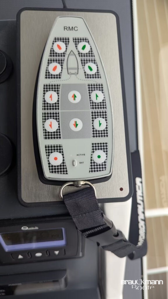 Fernbedienung von Hydronautica für Bug- und Heckstrahlruder sowie Vor- und Rückwärtsfahrt.