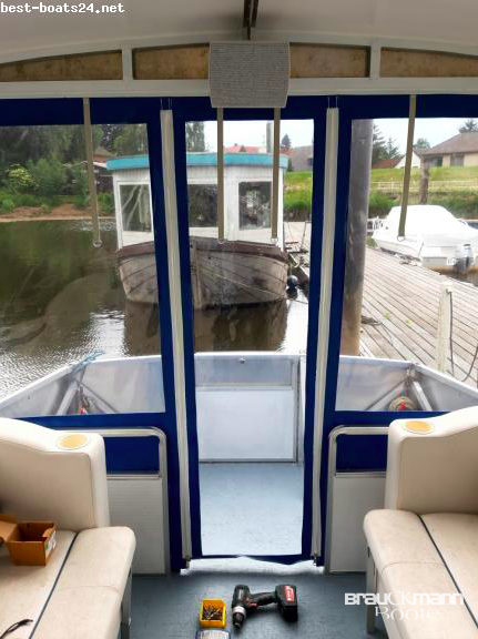 WC Chemie, Geschwindigkeitsanzeige, Sprayhood, Anker, Ankerkette Edelstahl, Batterie, Anker mit Kette, Badeleiter, Radio, Kapitänssitz drehbar und 3 Sofas mit Lederbezügen, inkl. Trailer gebremst neu, Hecktür bzw. Bb. zur Badeleiter, Radio- CD-Player,mit AUX Anschluss für externe Medien.