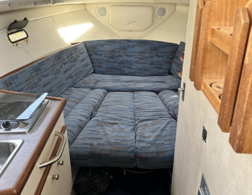 Asiento corrido (tapizado) bajo cubierta retapizado en 2018.