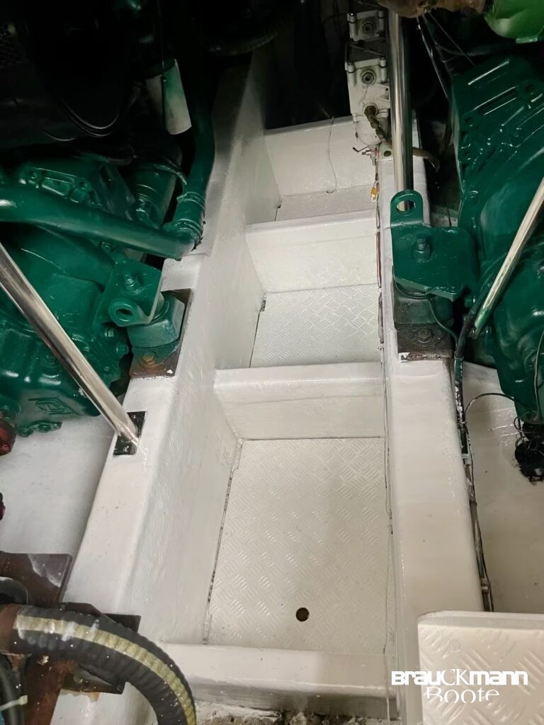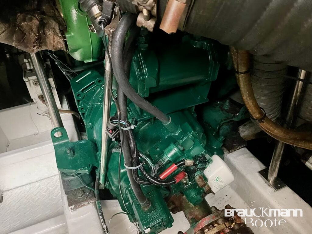 Für kraftvolle und zugleich souveräne Leistung sorgen zwei Volvo Penta TAMD 122 EDC Dieselmotoren mit elektronischer Schaltung und jeweils 610 PS. Die klassische Wellenanlage steht für Zuverlässigkeit, Wartungsfreundlichkeit und sichere Kraftübertragung. Mit dieser Motorisierung bietet die Yacht beste Voraussetzungen für komfortables Cruising und entspanntes Reisen.